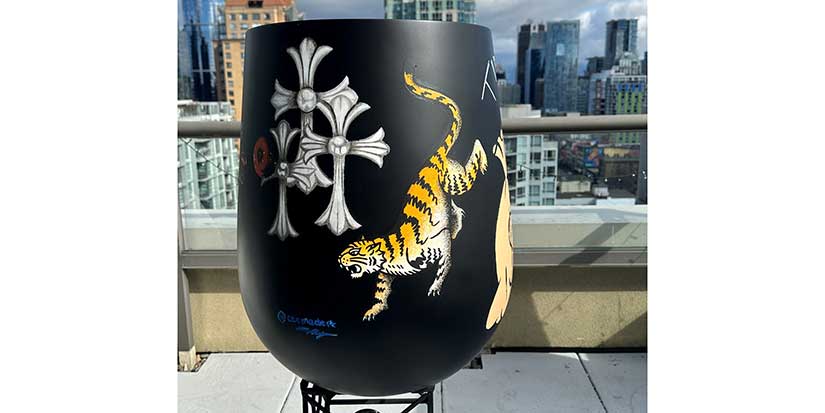 Cecilia Heit, the up and coming artist, first came to our attention when we saw her painting entitled, The Canucks LP. “It was a collaborative effort born during a visit to a record store with my father,” Heit tells us when we visited her studio, “and he suggested a unique concept incorporating the Canucks logo onto a record and transforming the record player’s needle arm into a hockey stick.” The end result: a finished piece that is so distinctive that even the print shop staff adopted the name The Canucks LP, when providing updates via email and voicemail (and take note, Canuck fans, the painting is for sale). Originally from Edmonton, Heit is a self-taught artist whose passion for art ignited at the age of 13 when she began experimenting with makeup and nail polish. “From there, it continued as friends sought my creative skills to make them something,” she says, “ which gave me the unique opportunity to pursue my passion while bringing others’ visions to life.” Judging by the various pieces she showed us, Heit is confident in experimenting with various styles and mediums, and although her finished work prominently features oil and acrylic paintings, she is also skillful in sculpting and watercolour. That diversity shows in two other works we viewed: Grandpa’s Cabin, her first oil painting, depicting a Shuswaps cabin that has deep connections to her family history; and Planting a Seed, a large, customized, plant pot.“ After seeing my work at a mutual friend’s house, a client arranged for a tree and pot to be delivered to my studio,” Heit tells us, “and from a range of options including the client’s favorite music festival, travel, watches, and a nod to his work ethic, I chose the most visually compelling elements to create this personalized piece.” More at cecmadeit.com