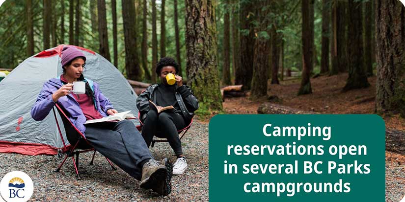 Camping reservations open in several BC Parks campgrounds
